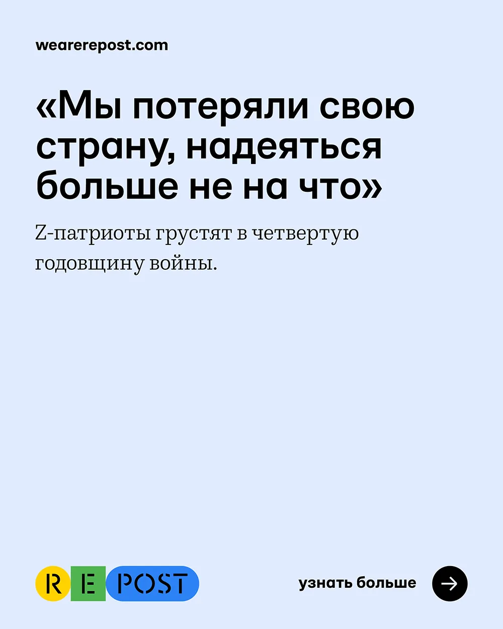 «Мы потеряли свою страну, надеяться больше не на что». Z-патриоты грустят в четвертую годовщину войны.