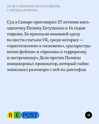 14 лет колонии за разговоры с провокатором. Дело Полины Евтушенко.